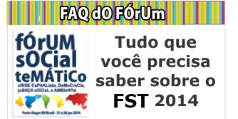Para facilitar o acesso às informações preparamos uma lista de perguntas e respostas sobre a organização, formas de participação, espaços e atividades do Fórum Social Temático Porto Alegre. Esclareça suas dívidas e divulgue nas redes.